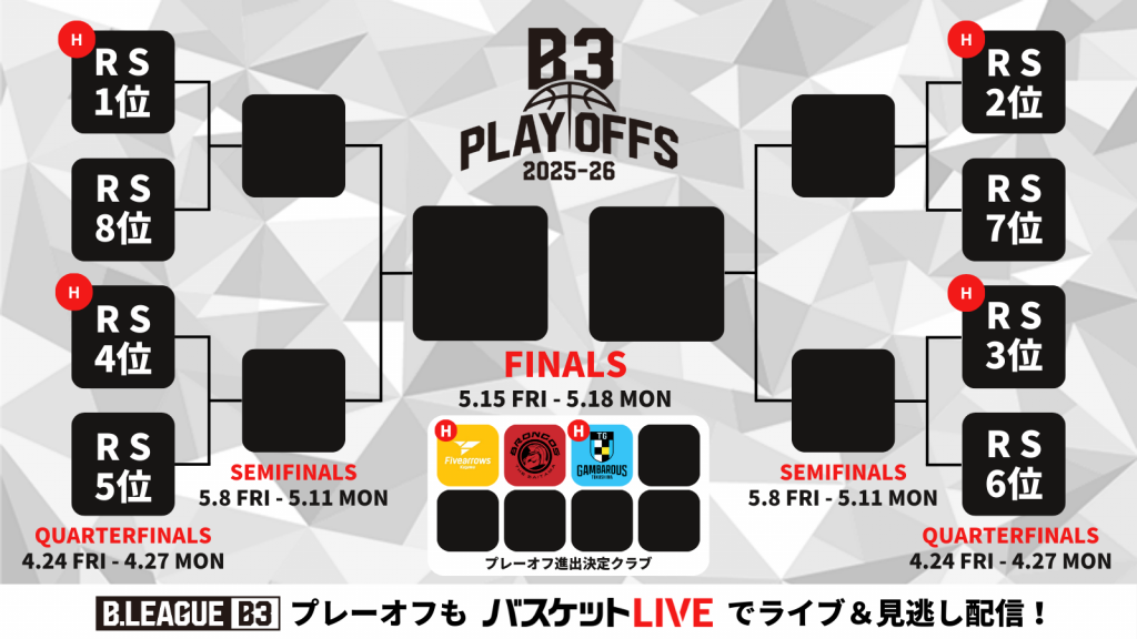 ■B3 PLAYOFFS QUARTERFINALS 2025-26 ホーム開催クラブ<2026年3月20日(金・祝)現在>