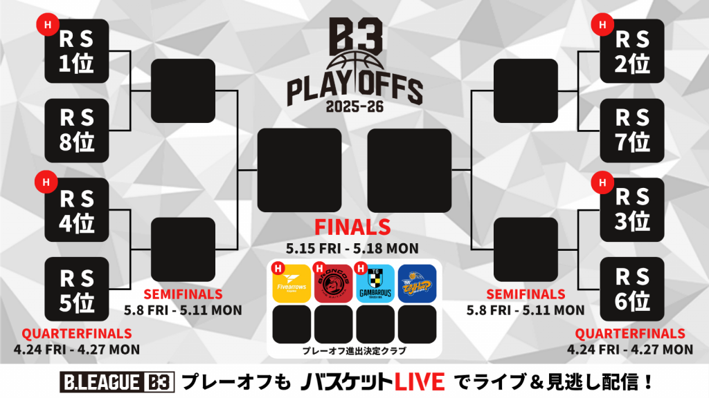 ■B3 PLAYOFFS QUARTERFINALS 2025-26 ホーム開催クラブ<2026年3月29日(日)現在>