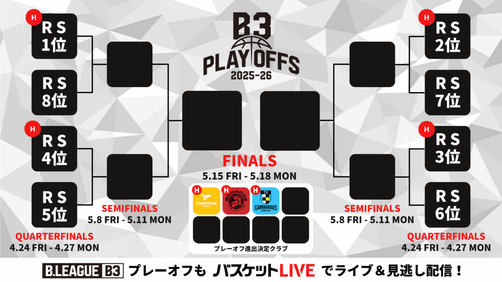 ■B3 PLAYOFFS QUARTERFINALS 2025-26 ホーム開催クラブ<2026年3月22日(日)現在>