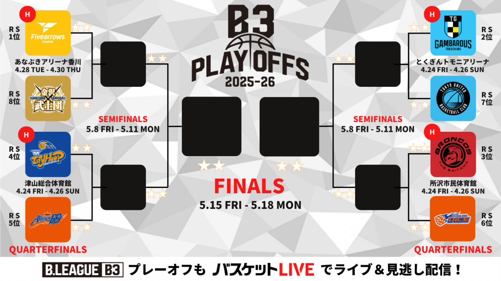 2026年4月24日(金)からレギュラーシーズン上位8クラブによる「B3リーグ プレーオフ 2025-26」が開催されます。